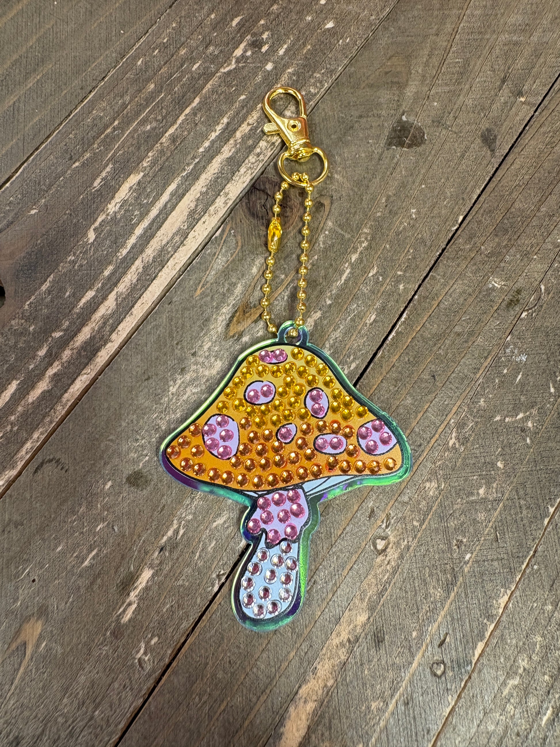 Accessorize and organize with these Key Chains which also can be used on purses, bags, zipper pulls! Choose from 5 quirky designs that showcase your playful personality. One of these handcrafted key chains is strung on a beading bar and made with silicone and plastic beads, featuring Highland Cow as focal beads. Another one is strung on a twine and beaded with round different solids, stripes and polk dot pink beads featuring Piglet as focal bead. 2 are handcrafted diamond art Mushroom and Butterfly designs. The last one is a Rhinestone Kitty Cat with a ruby gem in the center. Keep your keys close and your style on point with these Key Chains!
