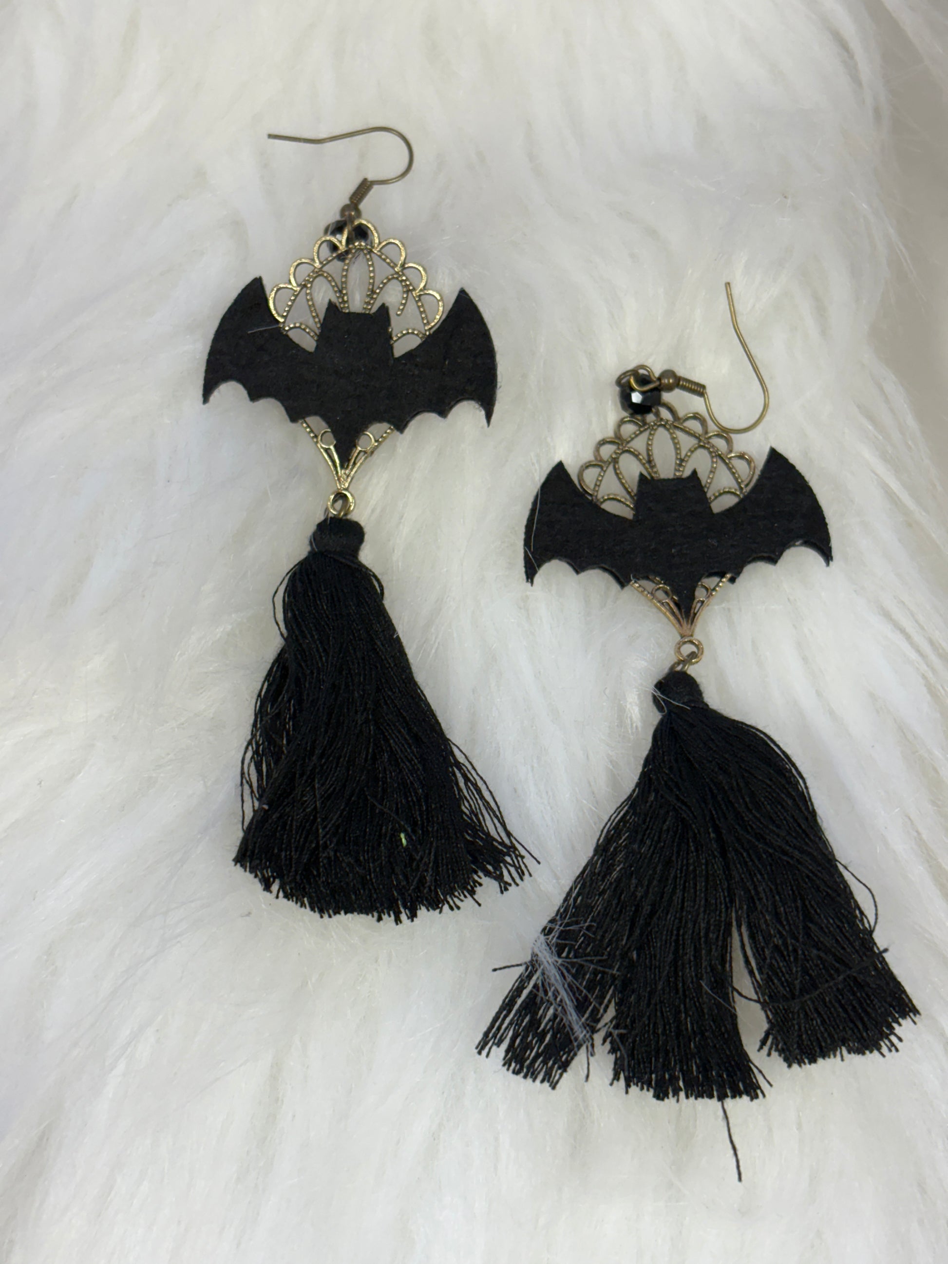 Black Bat Tassel Wire Earrings – Gothic Halloween Statement Jewelry