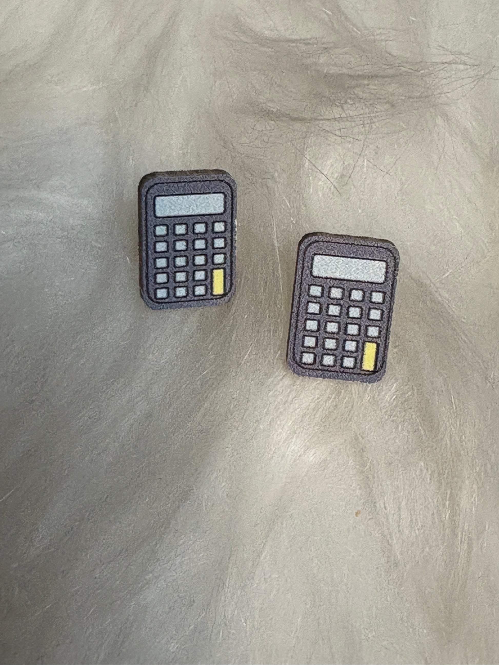 Show off your math-loving side with these quirky Calculator Wooden Stud Earrings! Each stud features a miniature calculator design, complete with tiny buttons and a bright yellow accent key for a playful pop of detail. Perfect for teachers, students, accountants, or anyone who loves numbers, these earrings add a touch of fun to any outfit.