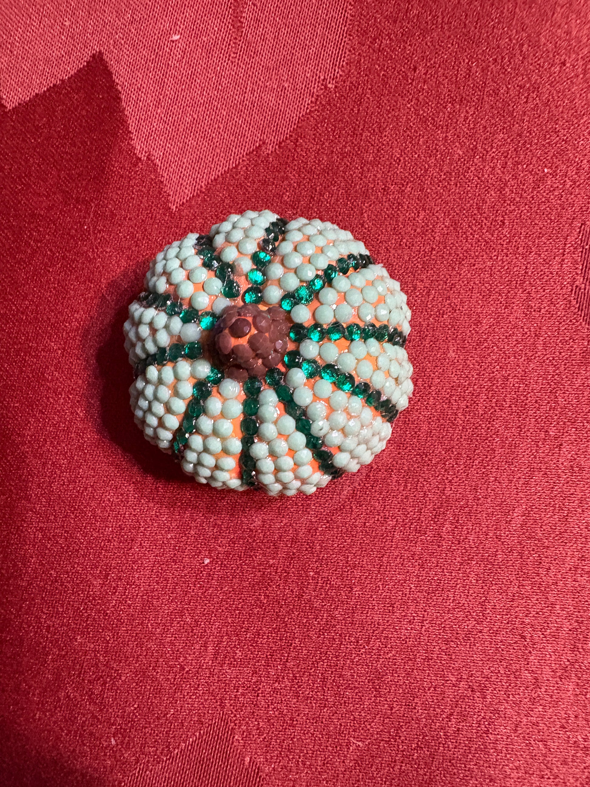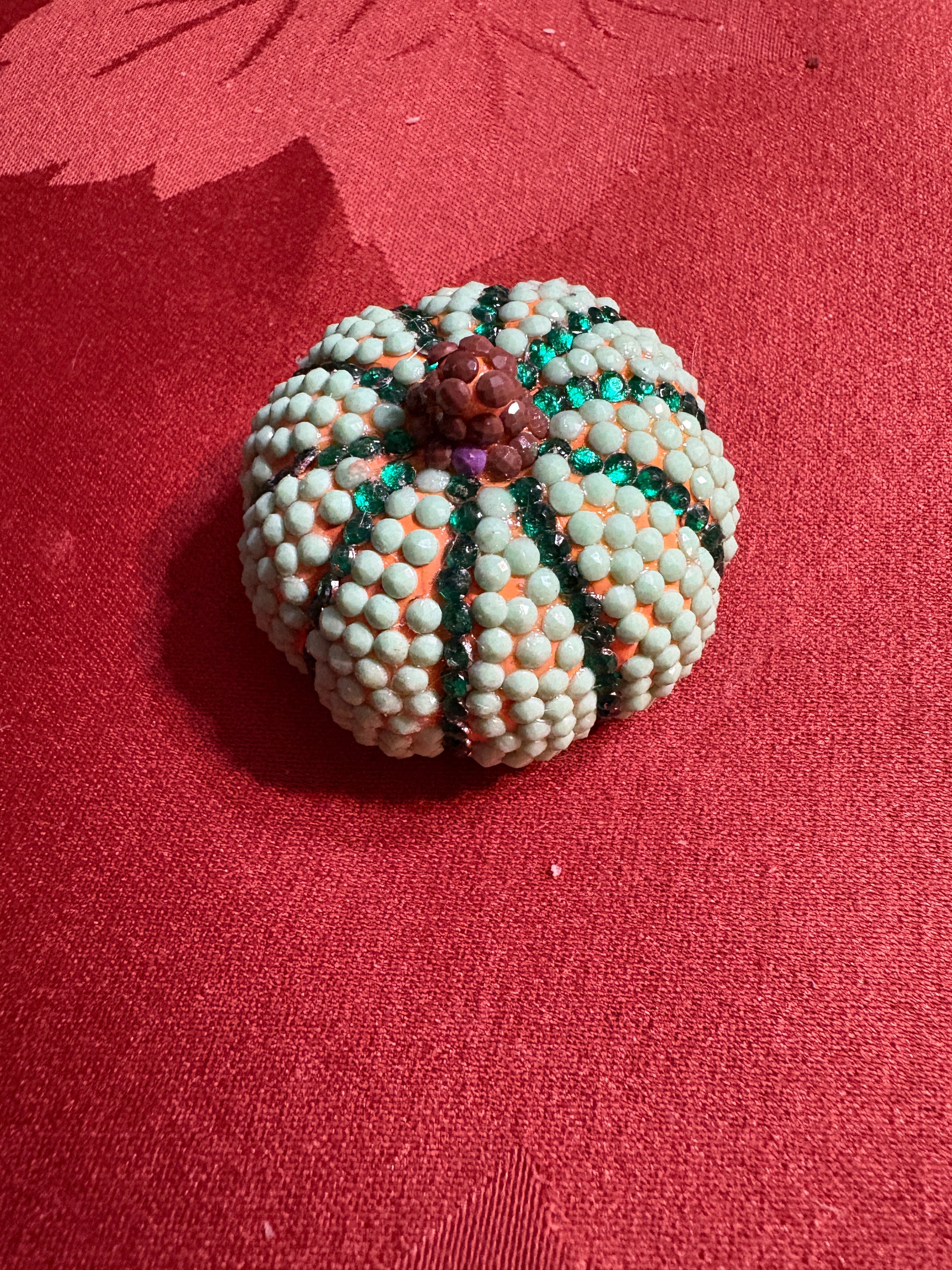 🎃 Design: Small pumpkin-shaped ceramic figurine with rhinestone detailing