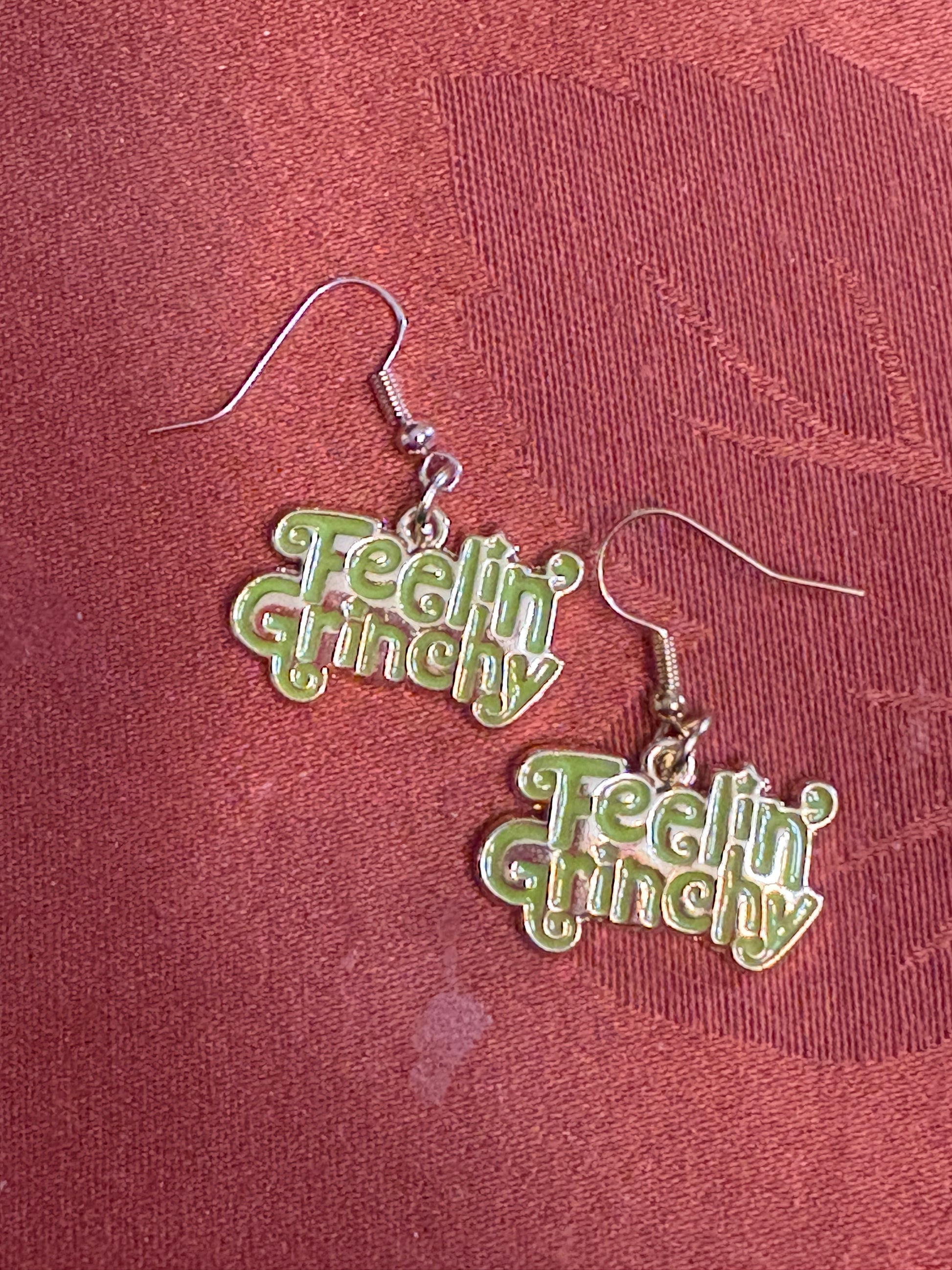 Bring a dash of playful mischief to your holiday look with these Feelin’ Grinchy earrings. Bold, glossy green lettering captures the cheeky spirit of the season, perfect for anyone who loves a little humor with their holiday sparkle. Lightweight and full of personality, these festive dangles are the ultimate conversation starter for Christmas parties, ugly sweater contests, or cozy cocoa nights in.