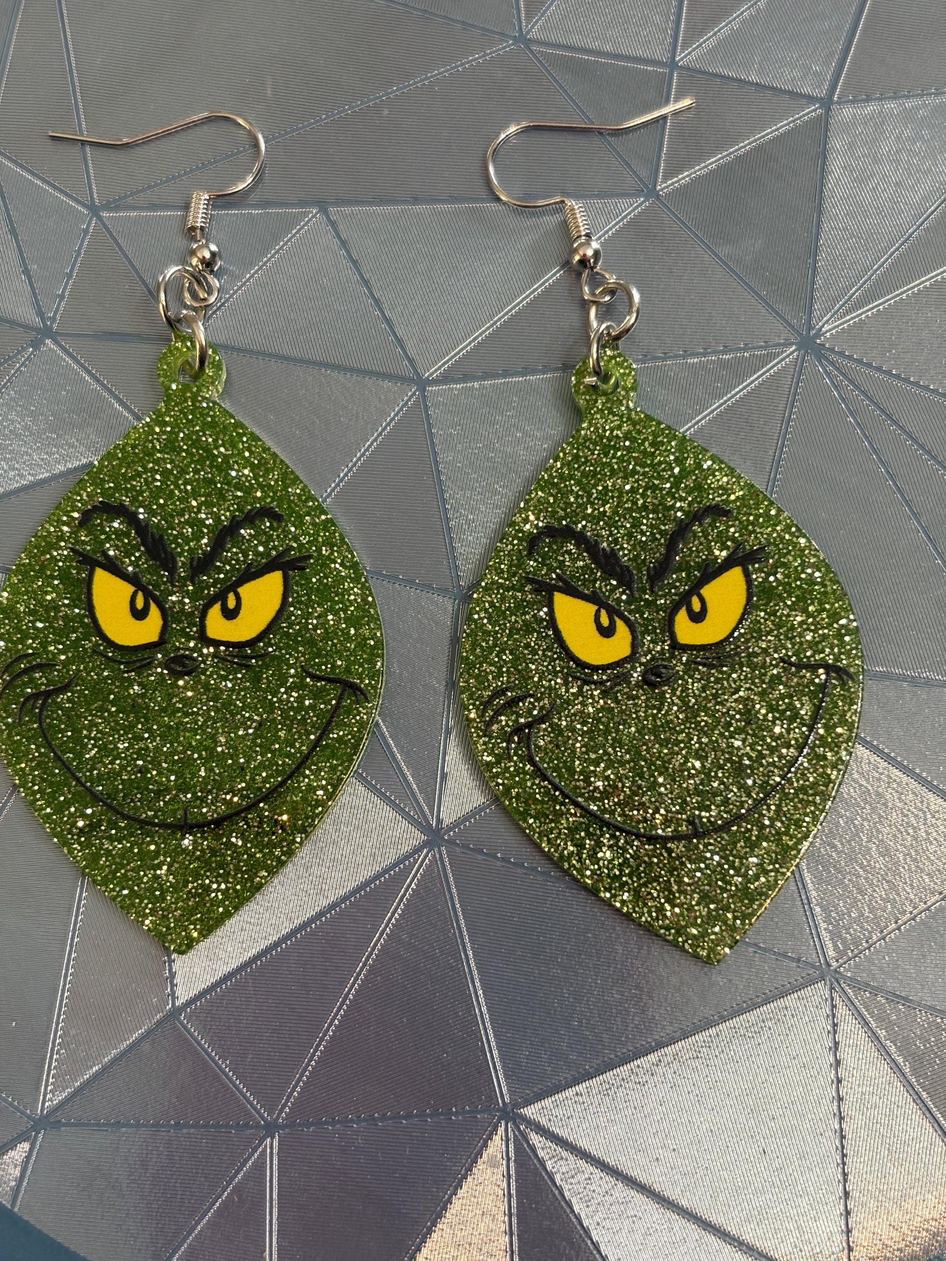 Add some sassy sparkle to your holiday look with these Grinch Face Glitter Earrings! Featuring a mischievous grin on shimmering green glitter acrylic, these playful dangles capture the spirit of festive fun and a little bit of holiday mischief. Lightweight yet eye-catching, they’re perfect for Christmas parties, gift exchanges, or anyone who loves a cheeky twist on their holiday style.