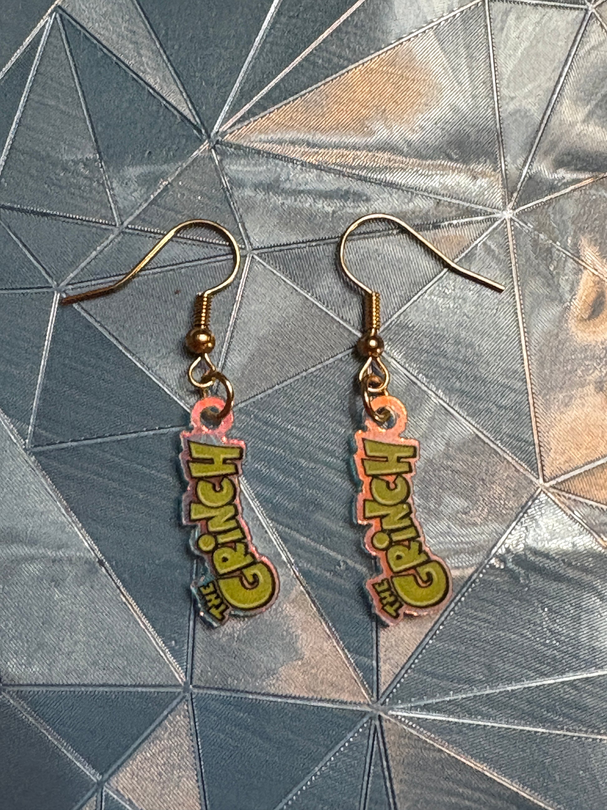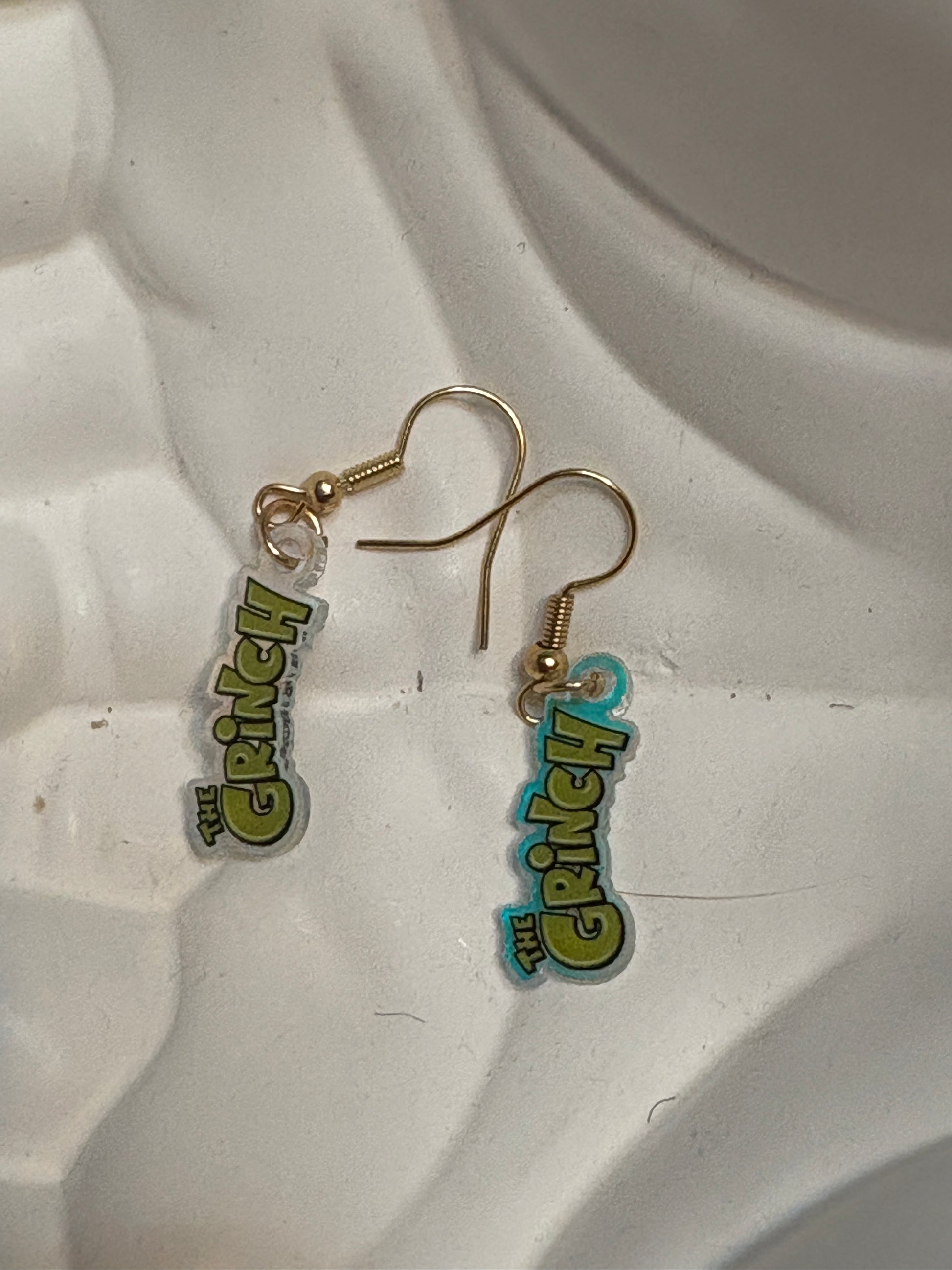 “The Grinch” Word Charm Earrings – Playful Acrylic Holiday Jewelry