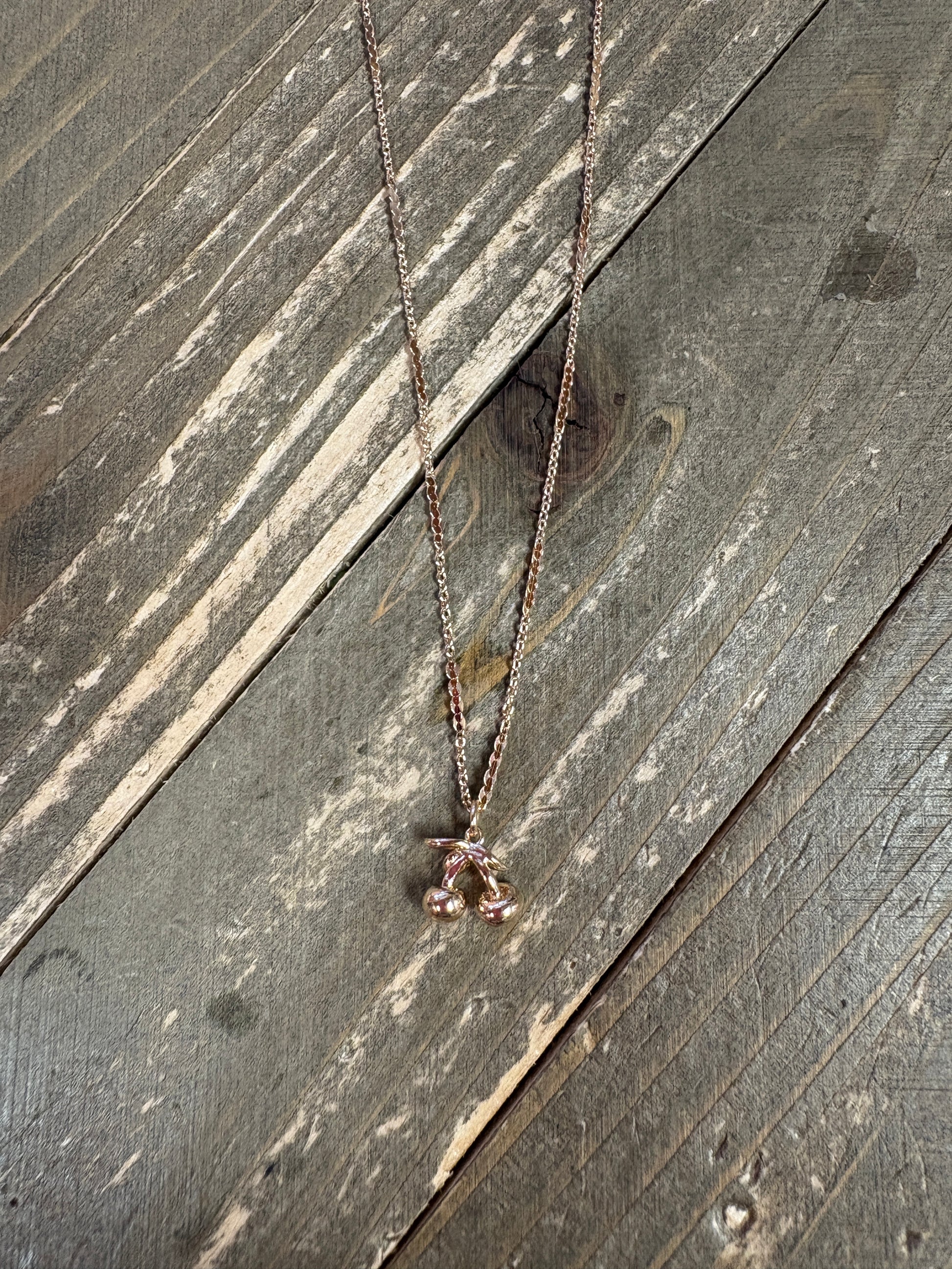 Gold Mini Cherry Charm Necklace – A dainty gold-plated chain adorned with a mini cherry charm. Adjustable with a 3" extender and secure lobster clasp, this necklace is versatile and easy to wear. (Length: 16" + 3", Charm: .5")