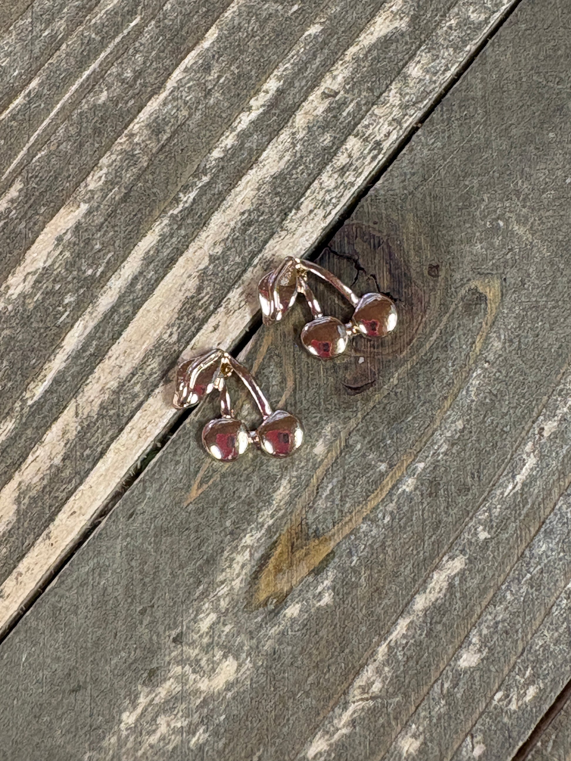 Cherry Earrings – Sweet gold-plated cherry studs with detailed craftsmanship for a fun, fruity vibe.