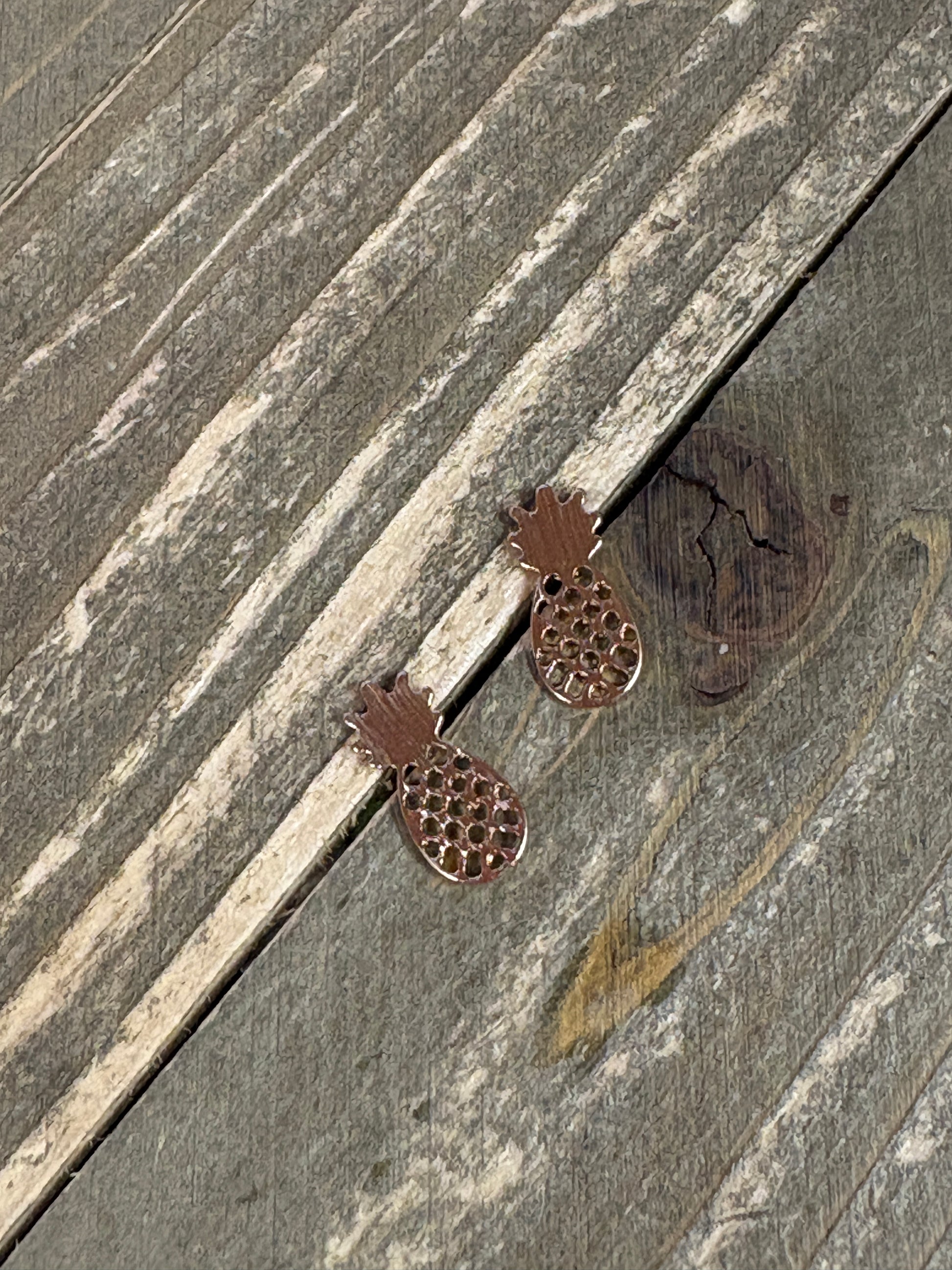 Pineapple Earrings – Tropical gold-plated pineapple studs with intricate cutout design, perfect for summer flair.