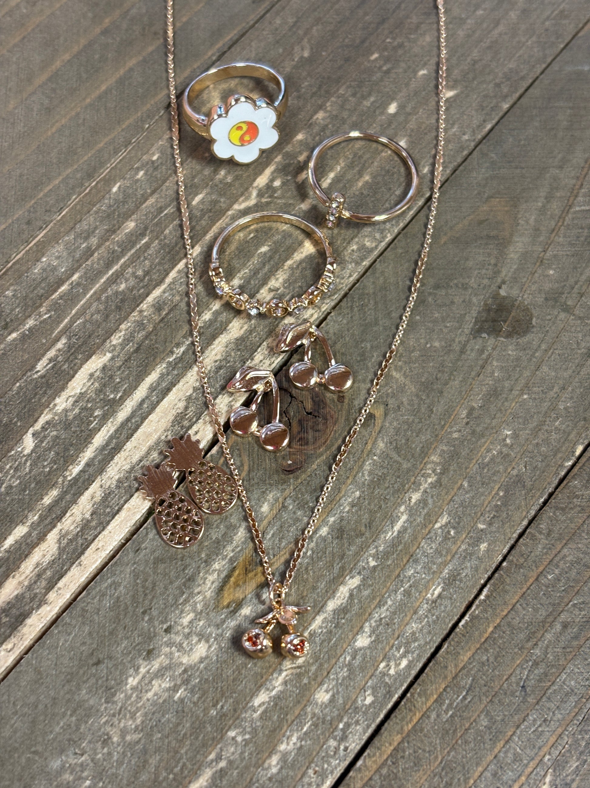Golden Fruit & Flower Jewelry Bundle – Necklace, Earrings & Rings Set