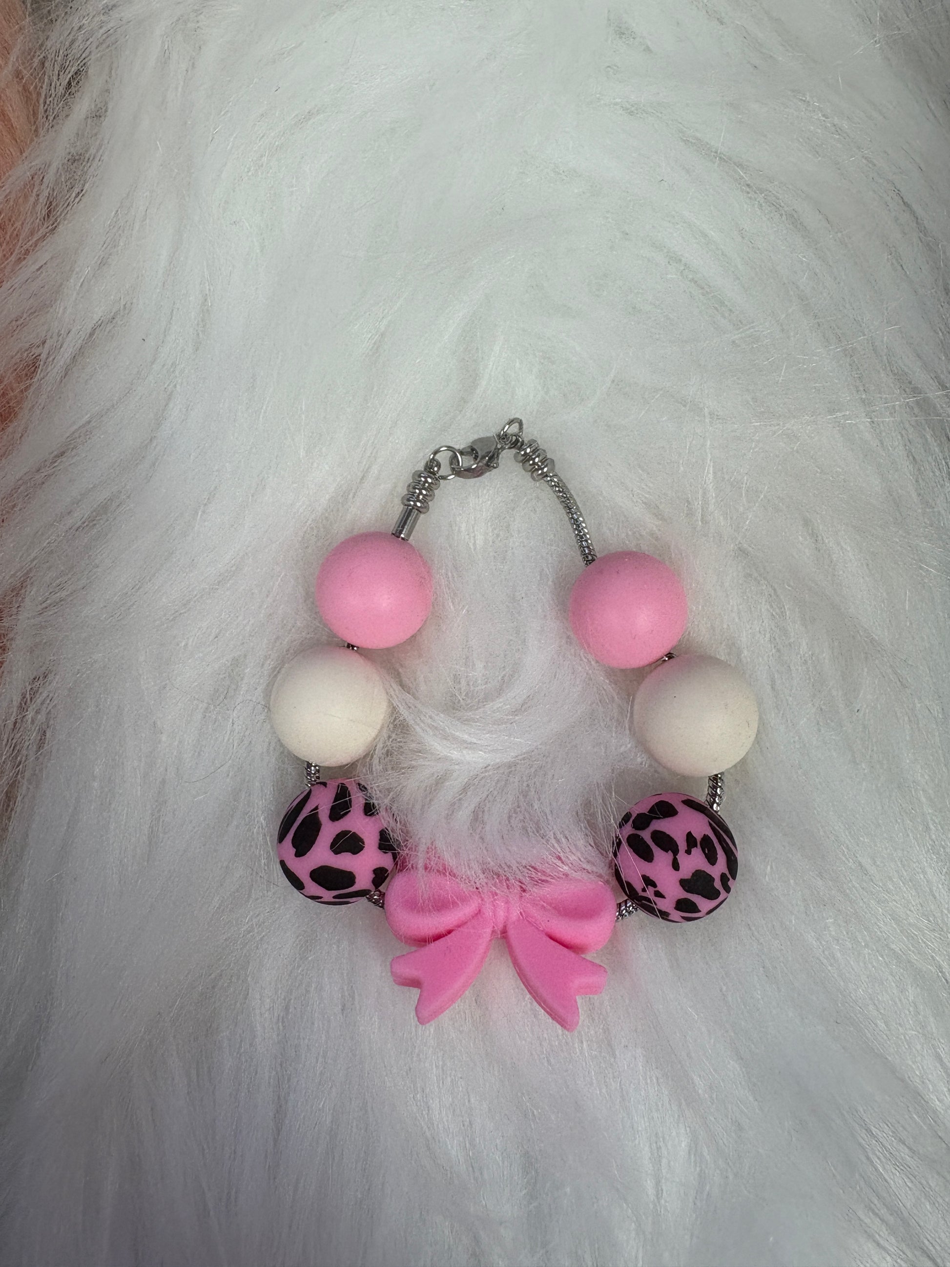 Add a sprinkle of charm to your drink with this Pink Bow Beverage Cup/Tumbler Charm! This delightful handmade accessory features charming Pink and Black spotted print and ivory & pink silicone beads, with an adorable pink bow stealing the spotlight. The beads are strung on 7" snake chain with lobster claw for easy adding beads. Perfect for both gifting and personal flair, this one-of-a-kind fashion piece ensures your tumbler stands out in style. Ideal for special occasions like birthdays or just because, it’s a funky gift that shows you care. With fast shipping and satisfaction guaranteed, elevate your beverage game today!