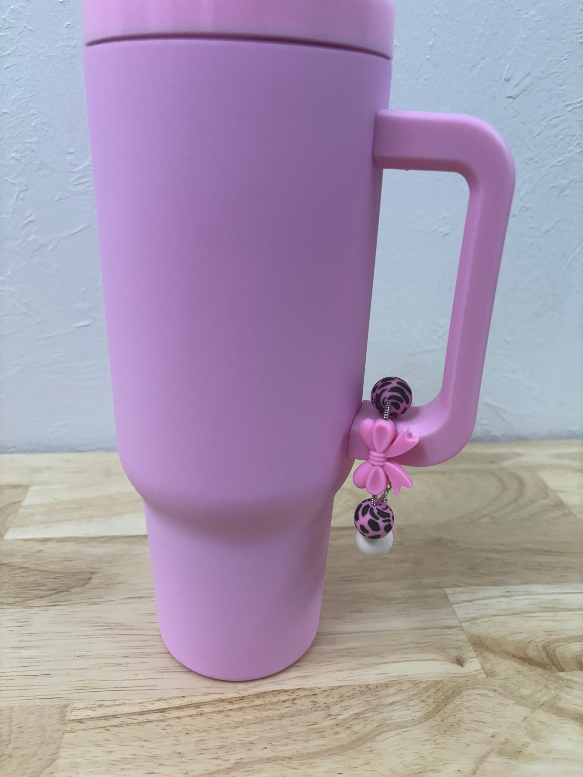 Pink Bow Beverage Cup/Tumbler Charm on a snake chain