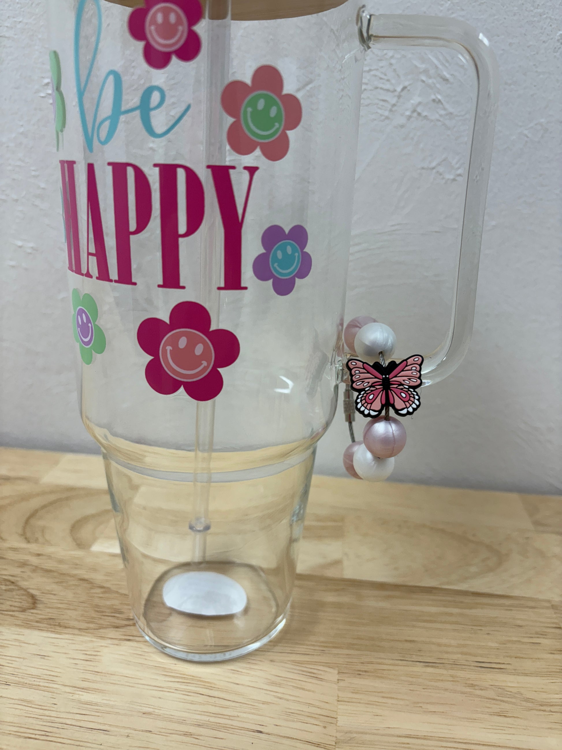 Pink Butterfly Beverage Cup/Tumbler Charm
