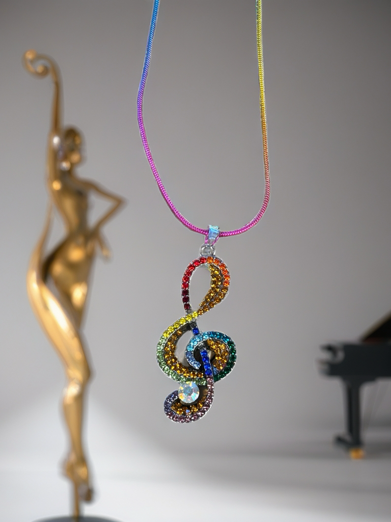 • Style: Rainbow treble clef pendant with sparkling rhinestone details