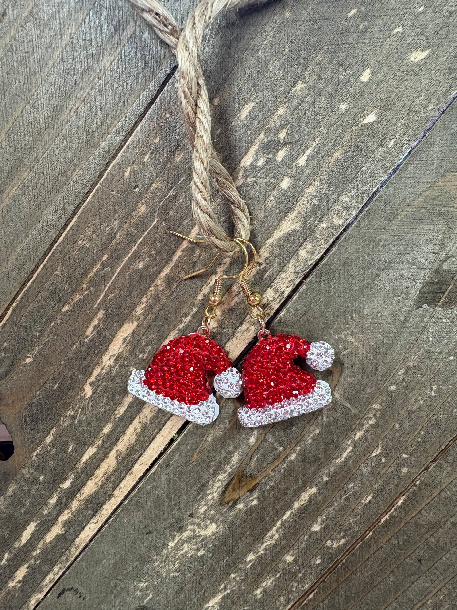 Santa Rhinestone Hat Charm Wire Earrings (Copy)