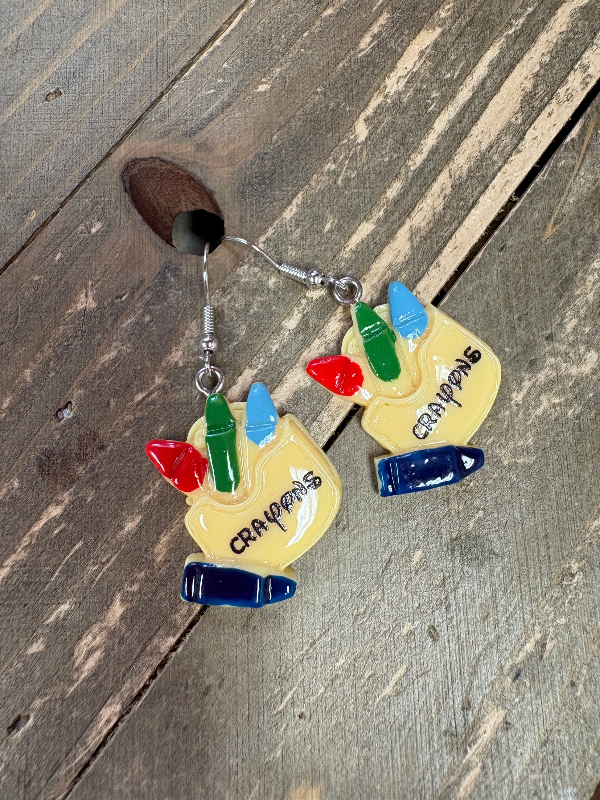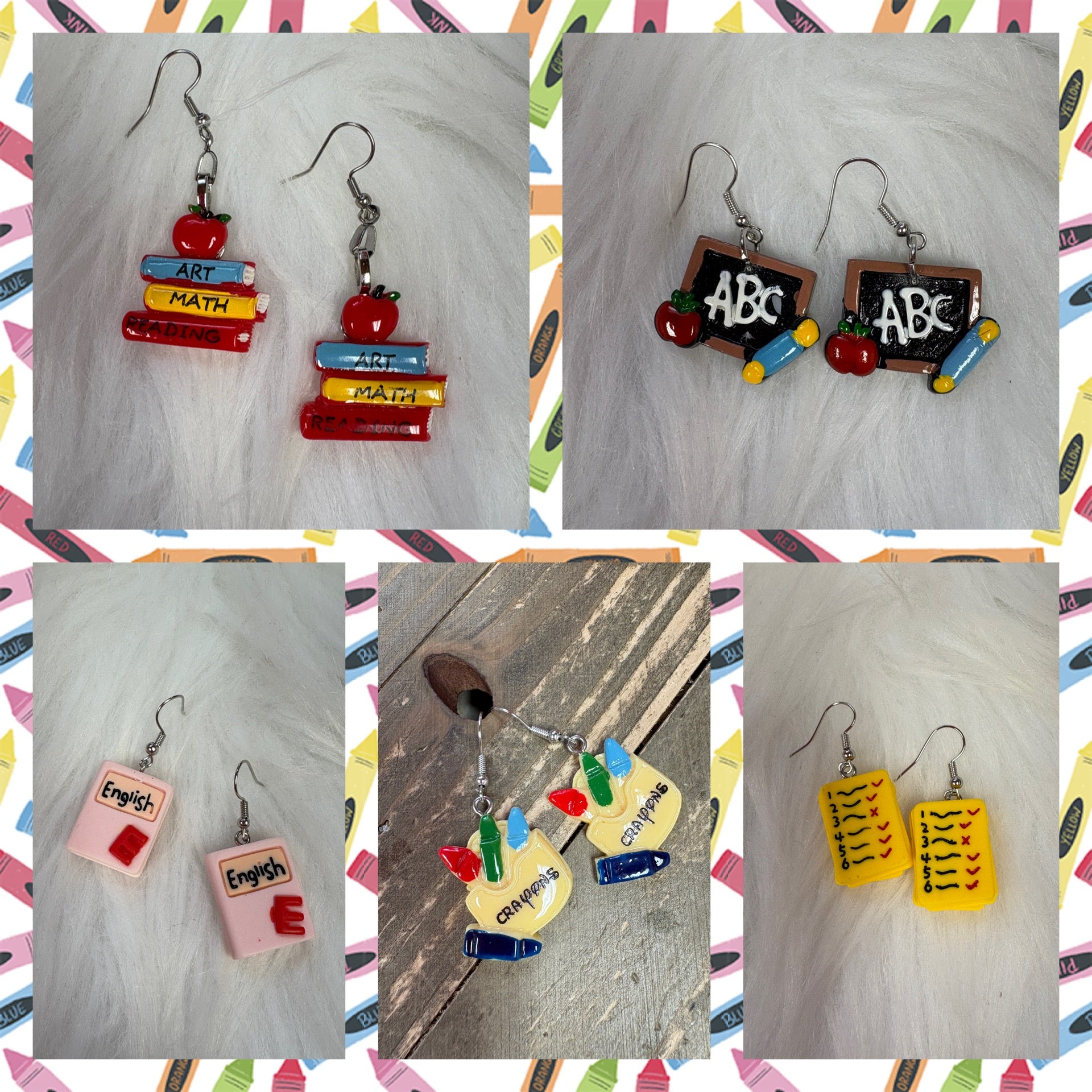 Add a touch of whimsy to your outfit with these School-Best Teacher/Student COLLECTION Wire Earrings. Choose from 5 unique charms, including books, chalkboard, and crayons. Made of durable and lightweight resin, they'll last for years to come. Charm sizes range from 26-31mm long, 19-25mm wide. Show off your love for learning with these playful earrings!