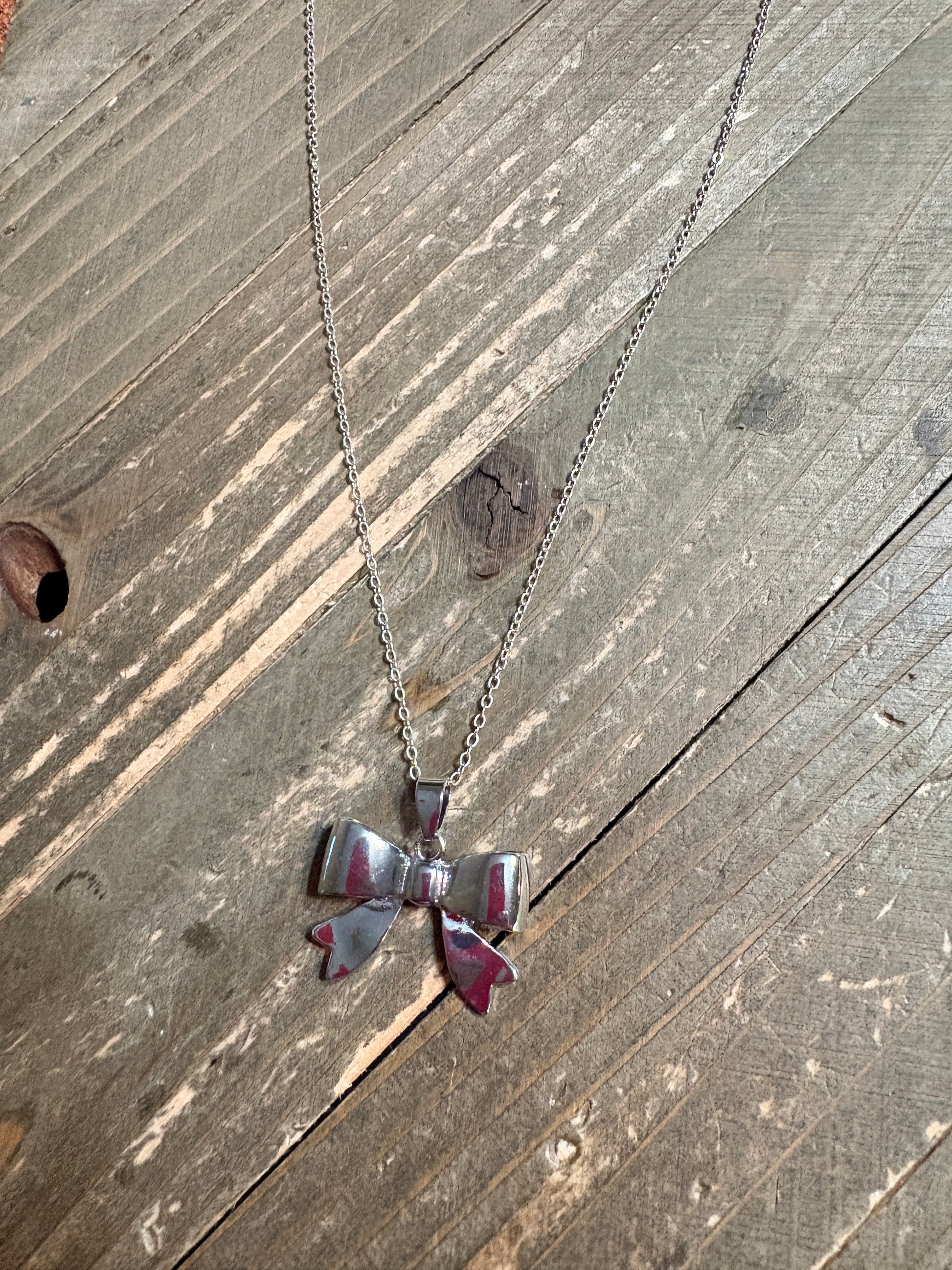 Silver Puff Bow Necklace – Cute Polished Bow Pendant on 16" Silver-Plated Chain