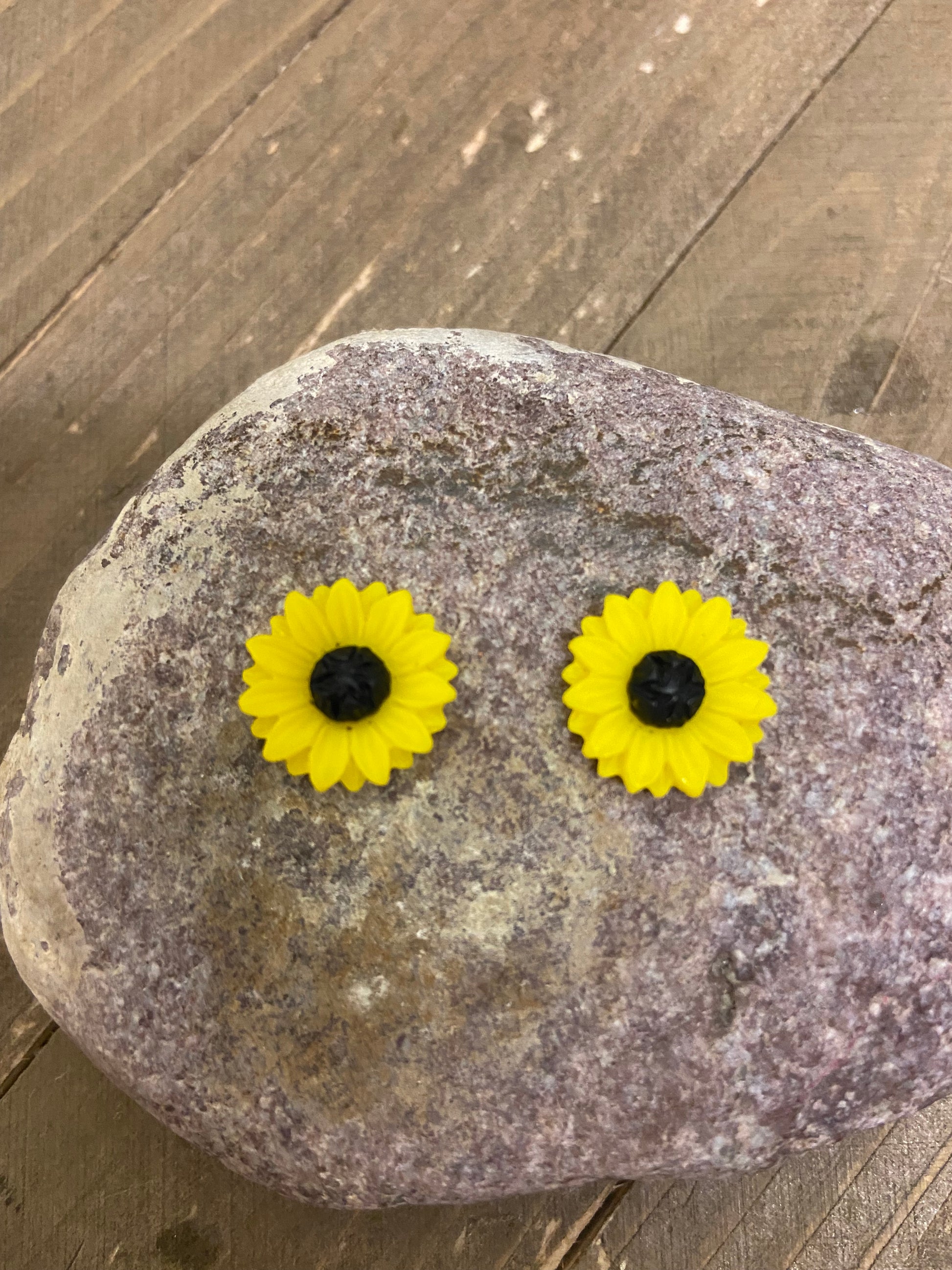 Tiny Sunflower Post Earrings – Bright Yellow Resin Floral Studs